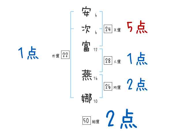 安次富燕娜さんの画数の鑑定結果