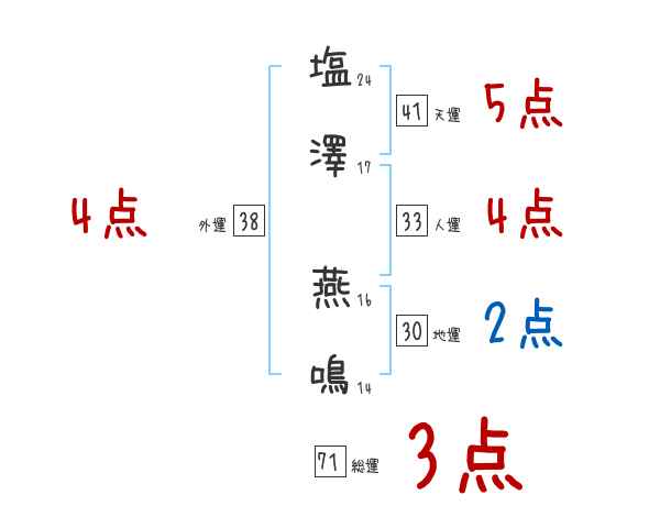 塩澤燕鳴さんの画数の鑑定結果