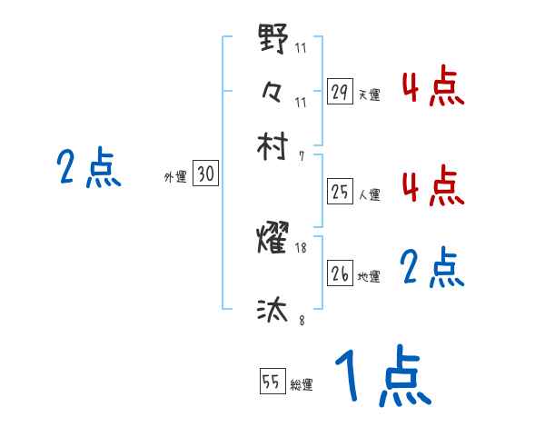 野々村燿汰さんの画数の鑑定結果
