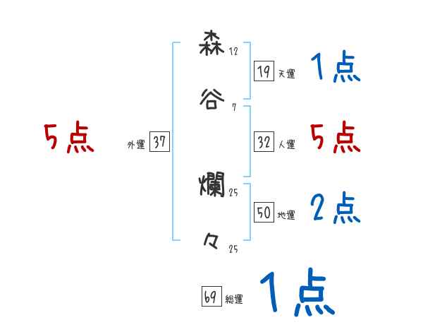 森谷爛々さんの画数の鑑定結果