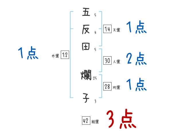 天運![]() | 五反田爛子さんの天運は14画の1つ星!人に対して優しいがストレスを溜め込みがち。人間関係のトラブルを避けるよう気をつけましょう。 家系が持つ宿命的な運勢を表します。祖先から受け継いだ苗字ですので自分の力が及びません。家柄を象徴します。 |