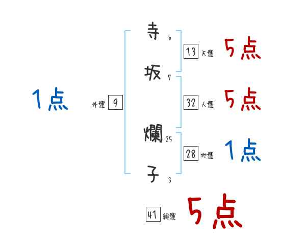 寺坂爛子さんの画数の鑑定結果