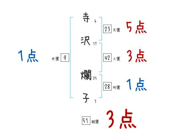 寺沢爛子さんの画数の鑑定結果