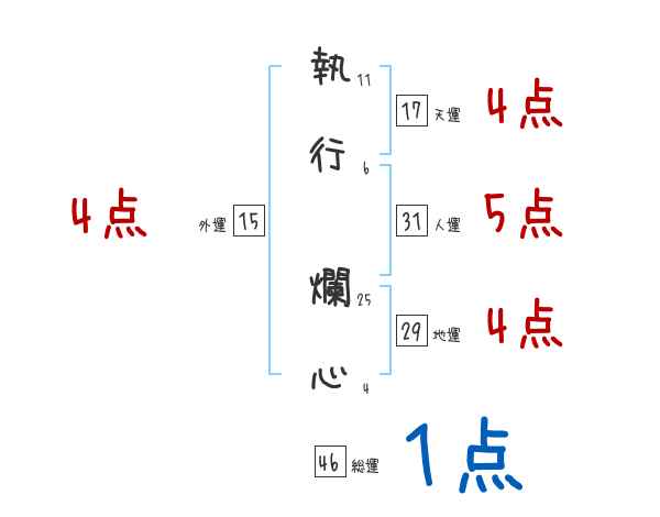 執行爛心さんの画数の鑑定結果