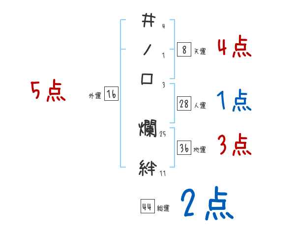 総運![]() | 井ノ口爛絆さんの総運は44画の2つ星!誠実で慎重な性格。物事を考えすぎないように注意しましょう。 あなたの人生を表す1番重要な運勢です。生涯を通じて影響する総合運となり、主に50歳以降の晩年期に影響を及ぼします。 |