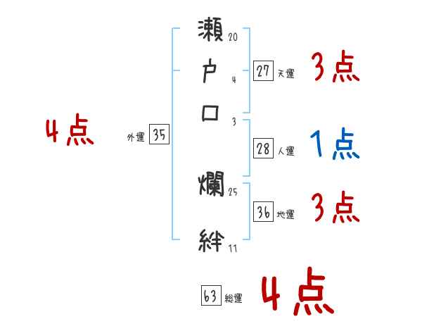 瀬戸口爛絆さんの画数の鑑定結果