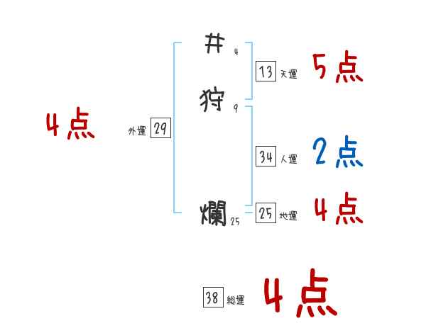 井狩爛さんの画数の鑑定結果