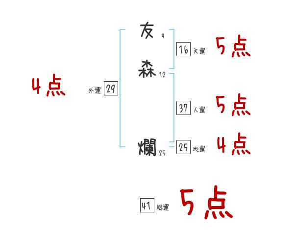 友森爛さんの画数の鑑定結果
