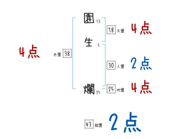園生爛さんの画数の鑑定結果
