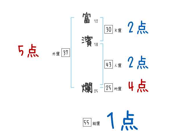 富濱爛さんの画数の鑑定結果