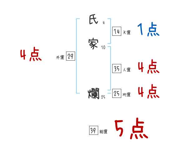 氏家爛さんの画数の鑑定結果