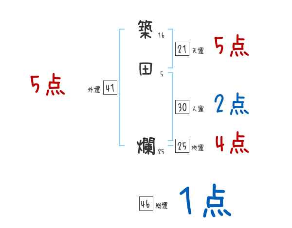 天運![]() | 築田爛さんの天運は21画の5つ星!統率力がある。独立し成功する。名誉を手に入れる。 家系が持つ宿命的な運勢を表します。祖先から受け継いだ苗字ですので自分の力が及びません。家柄を象徴します。 |
