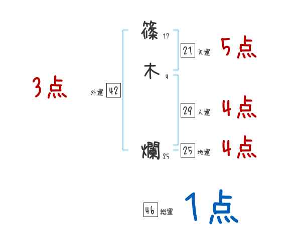 篠木爛さんの画数の鑑定結果