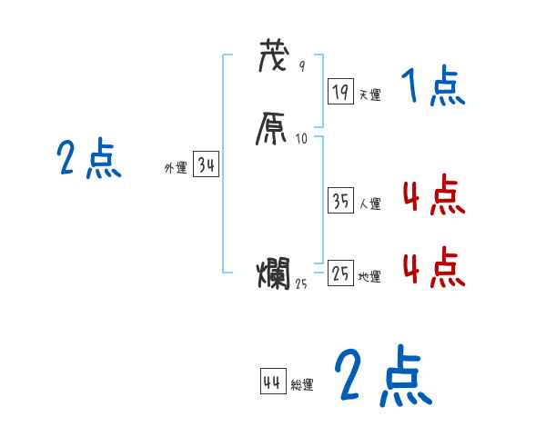 茂原爛さんの画数の鑑定結果