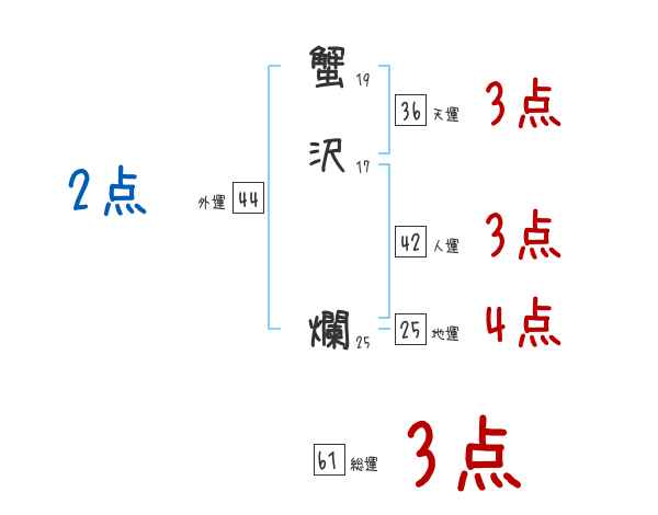 蟹沢爛さんの画数の鑑定結果