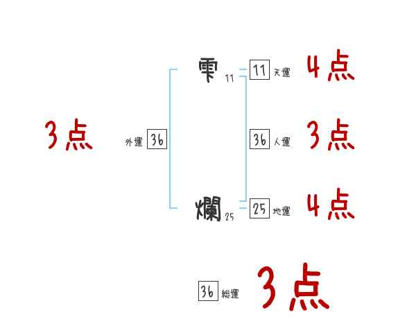雫爛さんの画数の鑑定結果