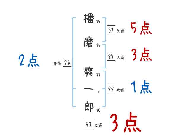 播磨爽一郎さんの画数の鑑定結果