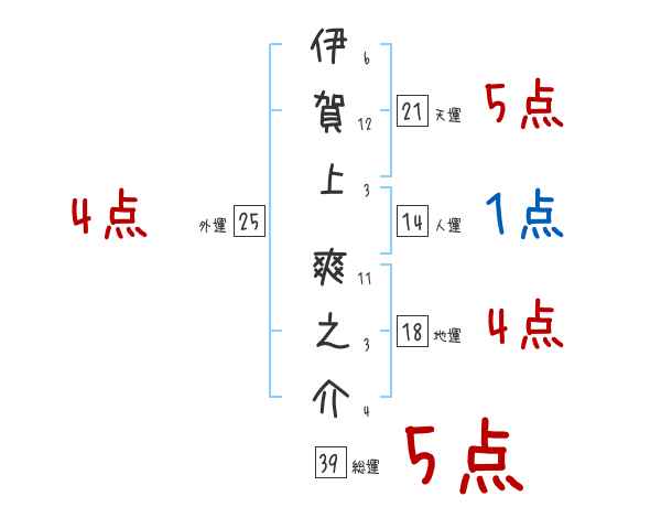 天運![]() | 伊賀上爽之介さんの天運は21画の5つ星!統率力がある。独立し成功する。名誉を手に入れる。 家系が持つ宿命的な運勢を表します。祖先から受け継いだ苗字ですので自分の力が及びません。家柄を象徴します。 |