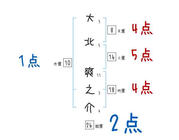 大北爽之介さんの画数の鑑定結果