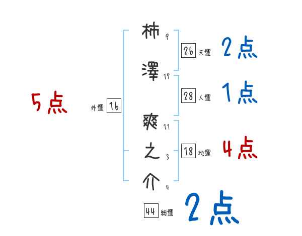 天運![]() | 柿澤爽之介さんの天運は26画の2つ星!波瀾万丈かも。信頼できる人を大事にしましょう。 家系が持つ宿命的な運勢を表します。祖先から受け継いだ苗字ですので自分の力が及びません。家柄を象徴します。 |