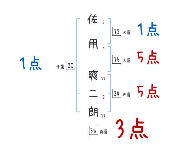 佐用爽二朗さんの画数の鑑定結果