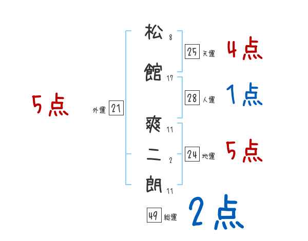 松館爽二朗さんの画数の鑑定結果