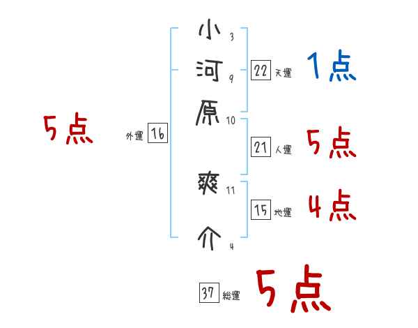 小河原爽介さんの画数の鑑定結果