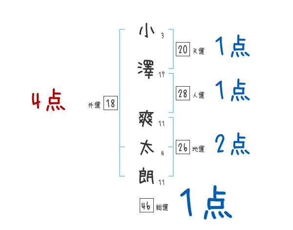 外運![]() | 小澤爽太朗さんの外運は18画の4つ星!情熱的で剛気。忍耐力があり信頼される。 生活面を象徴する運勢です。外部から受ける影響力を表し、結婚運、家庭運や職場、環境への順応性を表します。 |