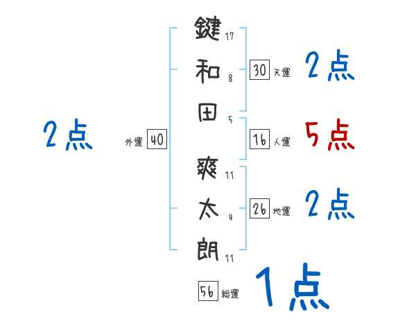 鍵和田爽太朗さんの画数の鑑定結果