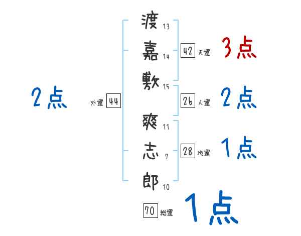 渡嘉敷爽志郎さんの画数の鑑定結果