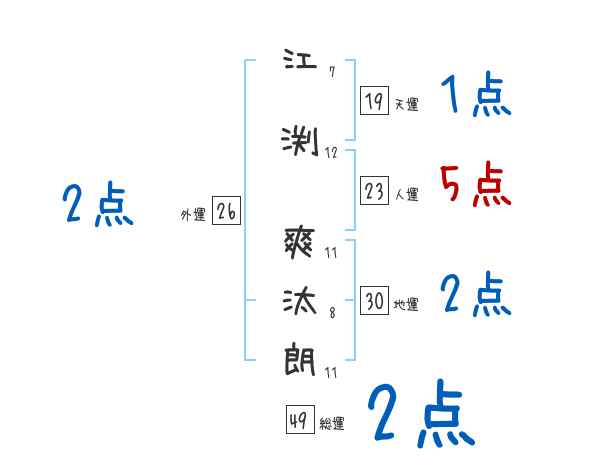外運![]() | 江渕爽汰朗さんの外運は26画の2つ星!波瀾万丈かも。信頼できる人を大事にしましょう。 生活面を象徴する運勢です。外部から受ける影響力を表し、結婚運、家庭運や職場、環境への順応性を表します。 |