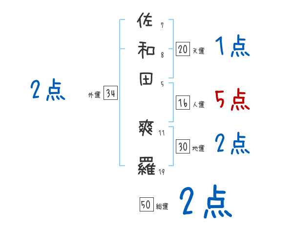 佐和田爽羅さんの画数の鑑定結果