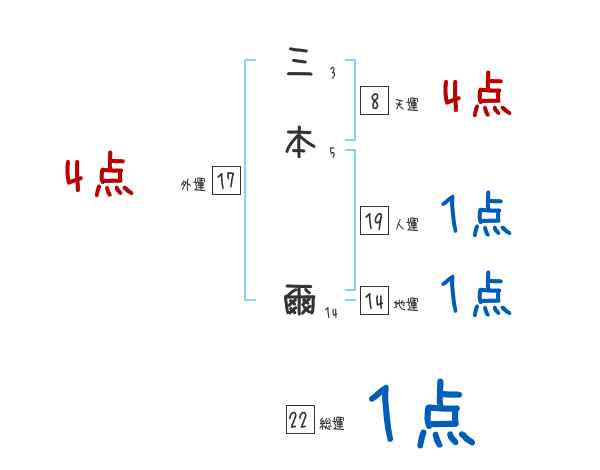 三本爾さんの画数の鑑定結果