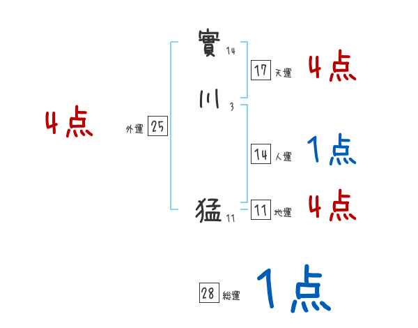 實川猛さんの画数の鑑定結果