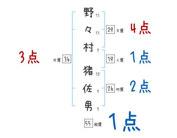 野々村猪佐男さんの画数の鑑定結果