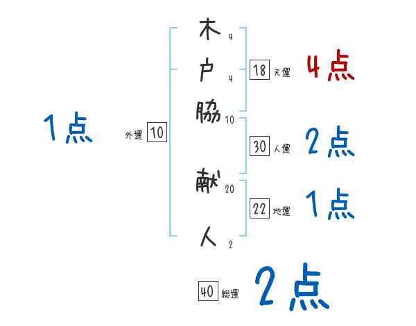 天運![]() | 木戸脇献人さんの天運は18画の4つ星!情熱的で剛気。忍耐力があり信頼される。 家系が持つ宿命的な運勢を表します。祖先から受け継いだ苗字ですので自分の力が及びません。家柄を象徴します。 |