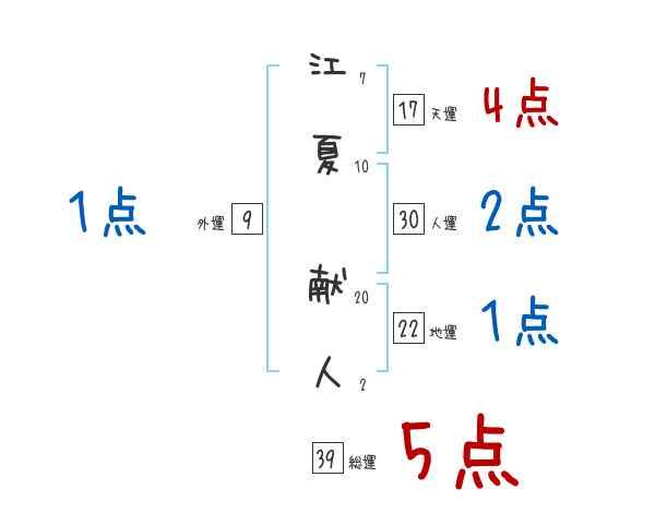 江夏献人さんの画数の鑑定結果