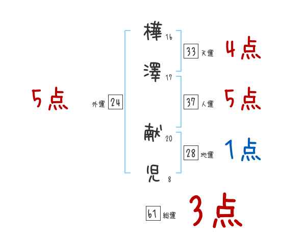 樺澤献児さんの画数の鑑定結果