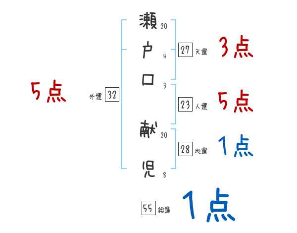 瀬戸口献児さんの画数の鑑定結果