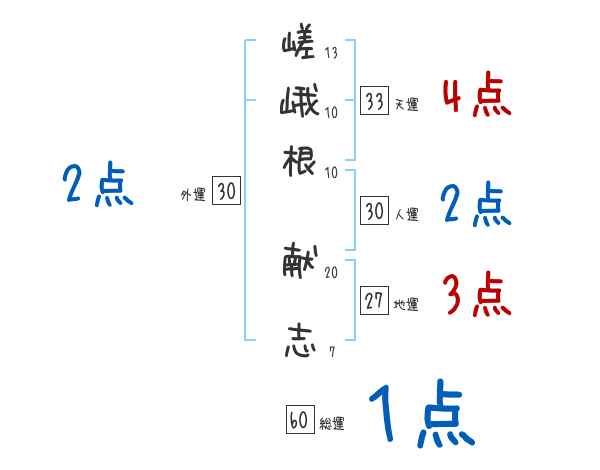 嵯峨根献志さんの画数の鑑定結果