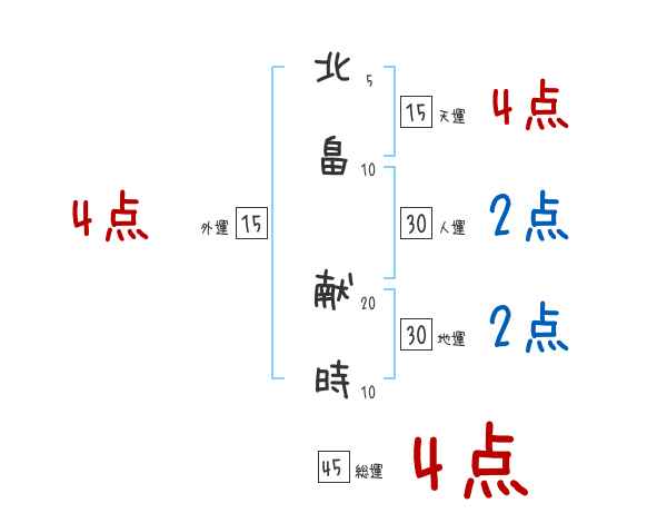 天運![]() | 北畠献時さんの天運は15画の4つ星!人徳があり出世する。順調に物事を進め円満な人生。 家系が持つ宿命的な運勢を表します。祖先から受け継いだ苗字ですので自分の力が及びません。家柄を象徴します。 |
