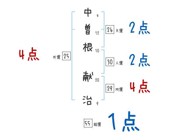 中曽根献治さんの画数の鑑定結果