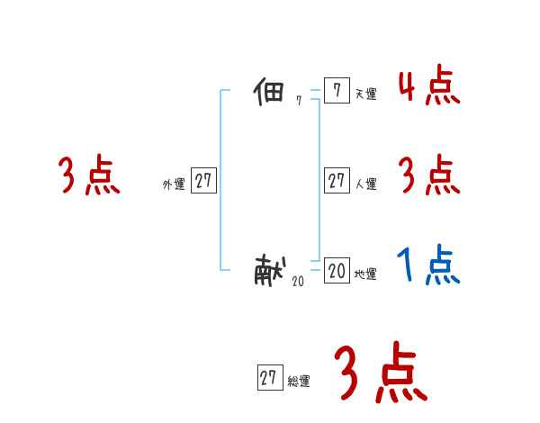 佃献さんの画数の鑑定結果