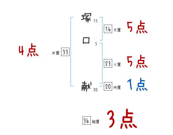 塚口献さんの画数の鑑定結果