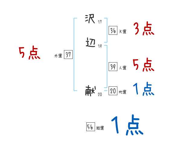沢辺献さんの画数の鑑定結果