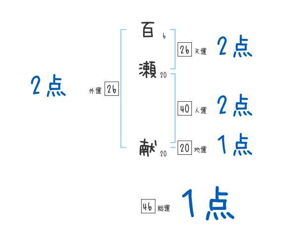 百瀬献さんの画数の鑑定結果