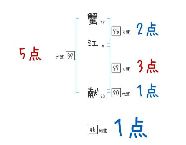 蟹江献さんの画数の鑑定結果