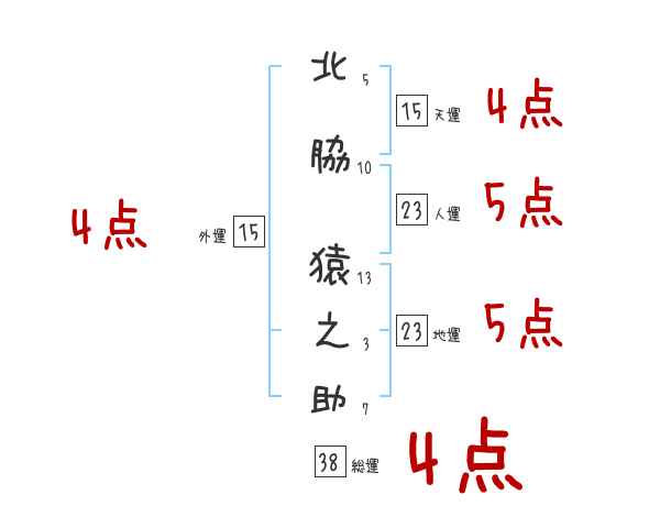 北脇猿之助さんの画数の鑑定結果