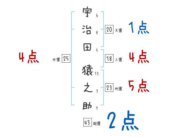 外運![]() | 宇治田猿之助さんの外運は25画の4つ星!個性があり才能があふれる。強運の持ち主で発展する。 生活面を象徴する運勢です。外部から受ける影響力を表し、結婚運、家庭運や職場、環境への順応性を表します。 |