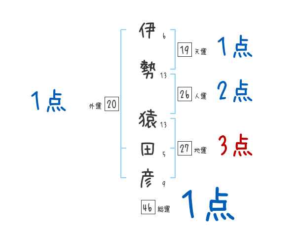 伊勢猿田彦さんの画数の鑑定結果